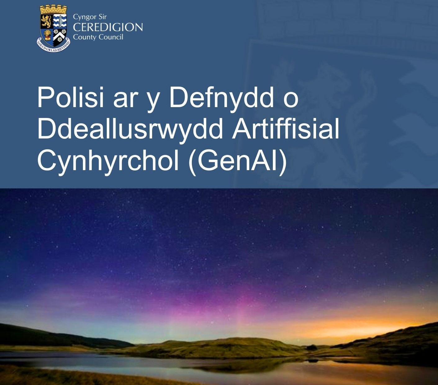 Pwrpas y ddogfen bolisi hon yw darparu fframwaith ar gyfer defnyddio Deallusrwydd Artiffisial Cynhyrchiol, Dysgu Peirianyddol a Model Iaith Mawr yn ddiogel ac yn foesegol gan weithwyr a chynghorwyr Cyngor Ceredigion. Mae hyn yn cynnwys offer fel CoPilot, Bard, Bing neu ChatGPT ond mae llawer o offer eraill hefyd ar gael ac yn cael eu hymgorffori mewn setiau cynnyrch eraill.