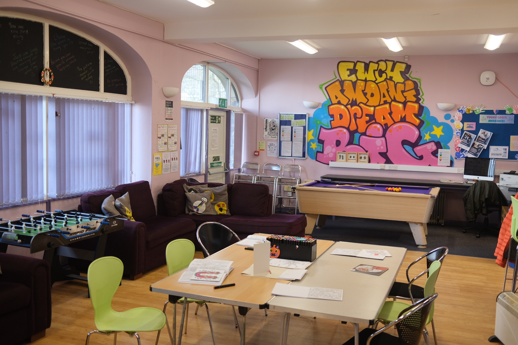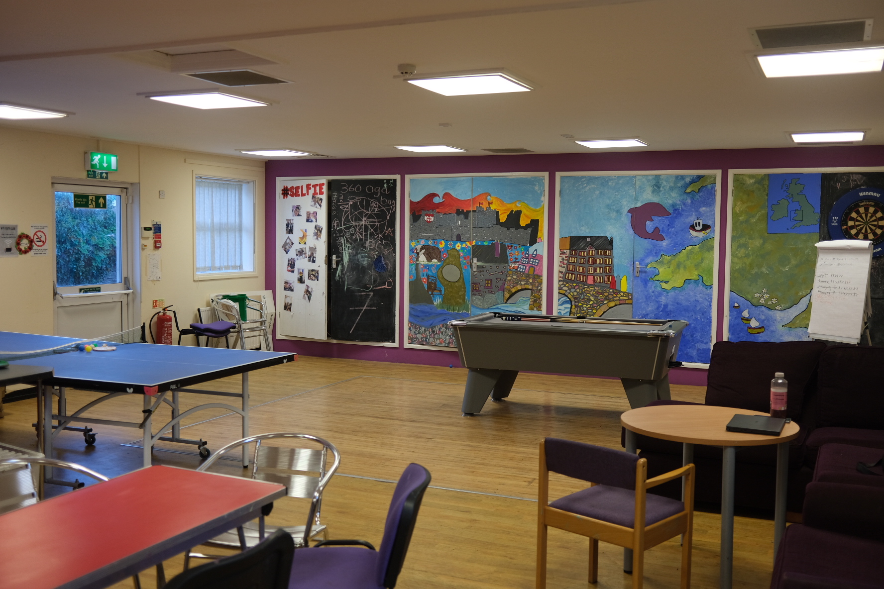 Beth sydd ar gael: tenis bwrdd, gemau bwrdd, celf a chrefft, cyfleusterau chwaraeon, bwyd a byrbrydau.