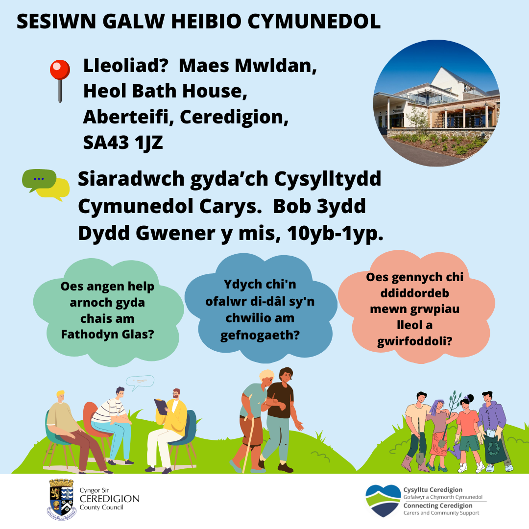 Siaradwch gyda’ch Cysylltydd Cymunedol Carys. Bob 3ydd Dydd Gwener y mis.