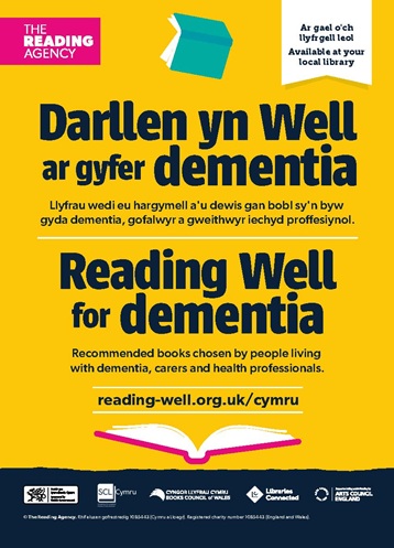 Mae Darllen yn Dda ar gyfer Dementia yn argymell adnoddau darllen ac adnoddau digidol defnyddiol i bobl sy'n byw gyda Dementia. Mae yna hefyd lyfrau ar gyfer y teulu, ffrindiau a gofalwyr. Mae’r rhestr lyfrau yn darparu gwybodaeth, cyngor a chymorth dibynadwy, yn ogystal â straeon personol a llyfrau sy’n addas i blant o wahanol oedrannau.