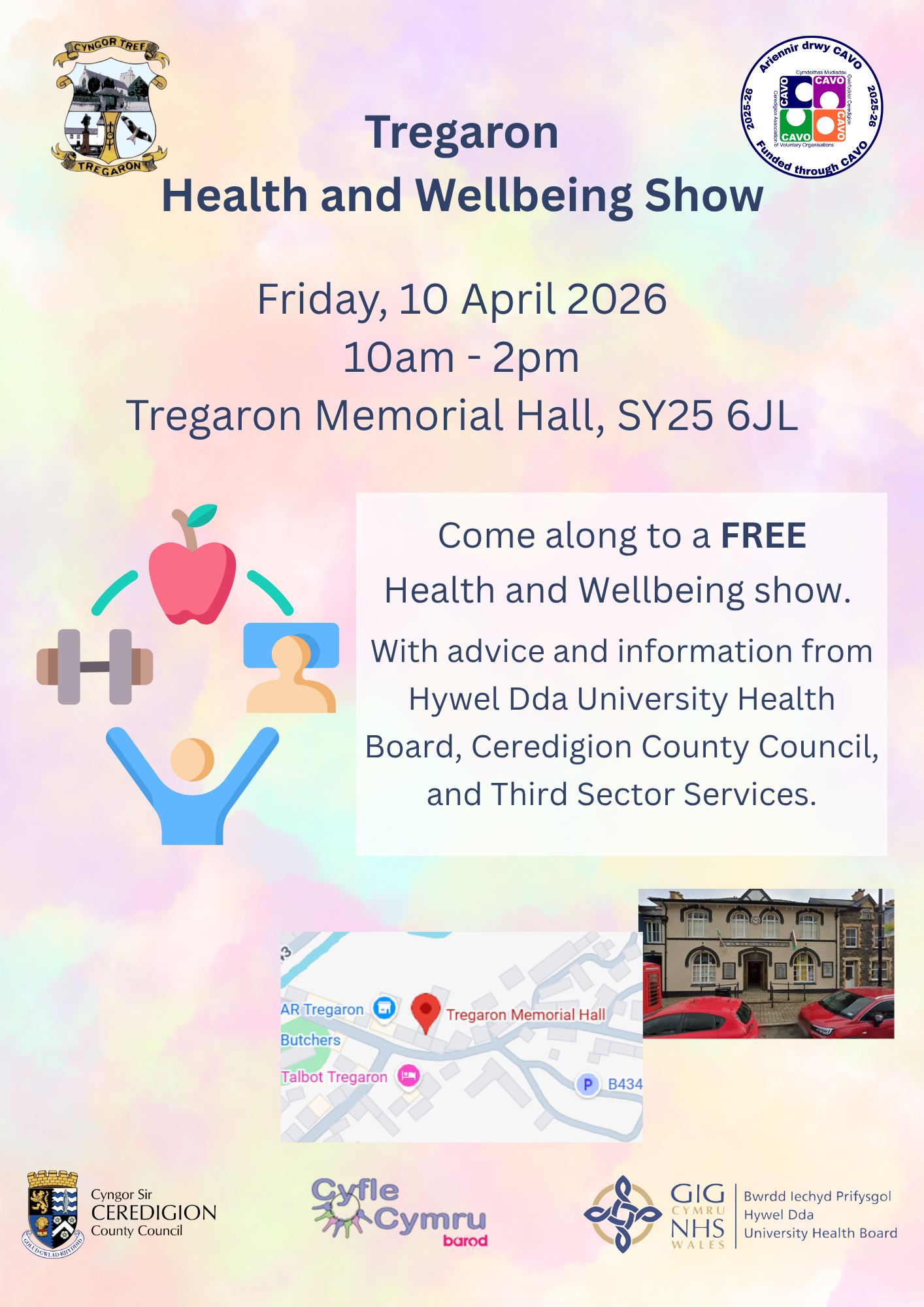Come along to a FREE Health and Wellbeing show. With advice and information from Hywel Dda University Health Board, Ceredigion and Third Sector Services.